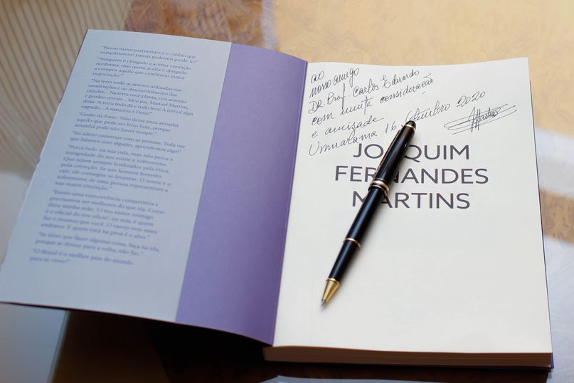 A trajetória do imigrante português que se tornou um dos principais empreendedores do Paraná agora está registrada em livro. Joaquim Fernandes Martins, dono da rede de supermercados Planalto, que opera em Umuarama e cidades da região, fez questão de encontrar-se com o Reitor da Universidade Paranaense, Carlos Eduardo Garcia, para presenteá-lo com a obra.