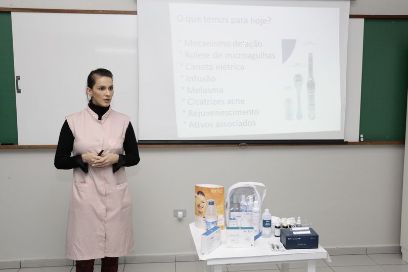 Também conhecido pelo nome indução percutânea de colágeno por agulhas (IPCA), o método tem despertado o interesse dos profissionais da área. Durante sua aula no laboratório de Estética da Unipar, Zaguini citou produtos e princípios ativos e os parâmetros utilizados em cada caso, além das contraindicações.