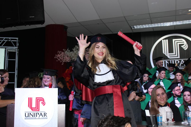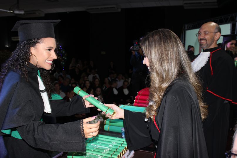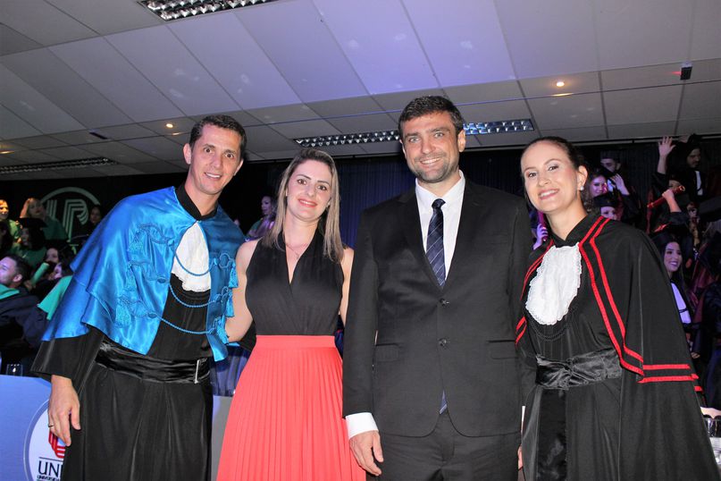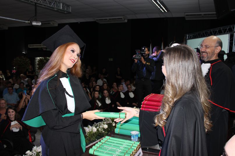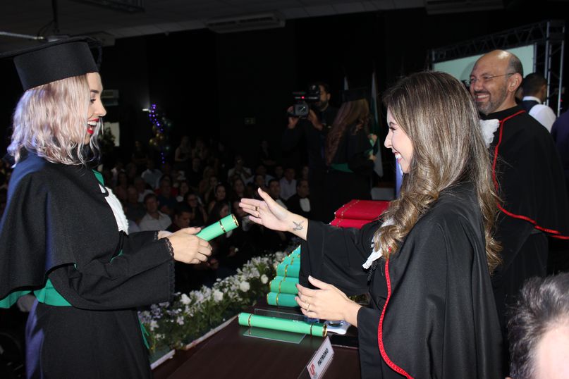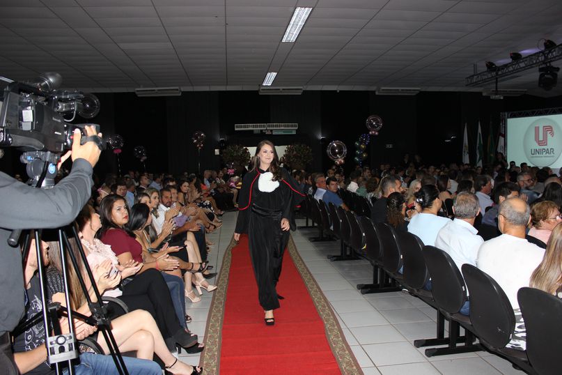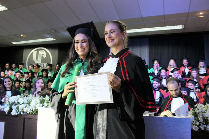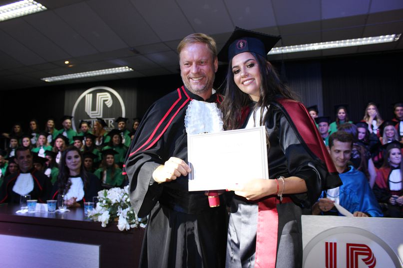 Como é de costume em todas as solenidades de colação de grau, a Unipar rende homenagem aos alunos que mais se destacaram em seus cursos. Certificado de honra ao mérito foi entregue pelos coordenadores de curso, professores Raphael Sahd, Débora Girardello e Laerte Bremm, aos laureados Iasmin Machado, Rosimeire Balaneker e Letícia Muller.