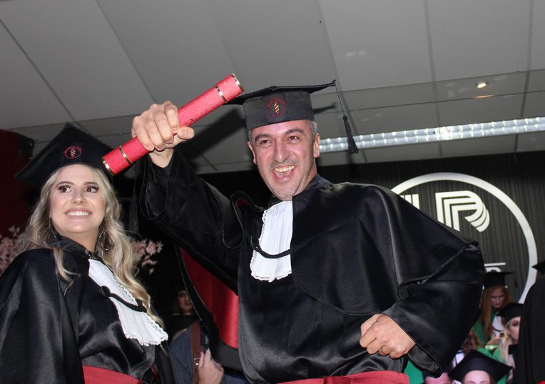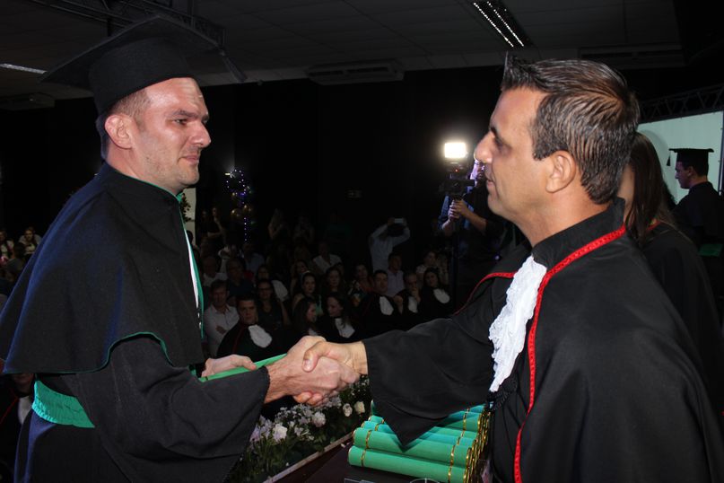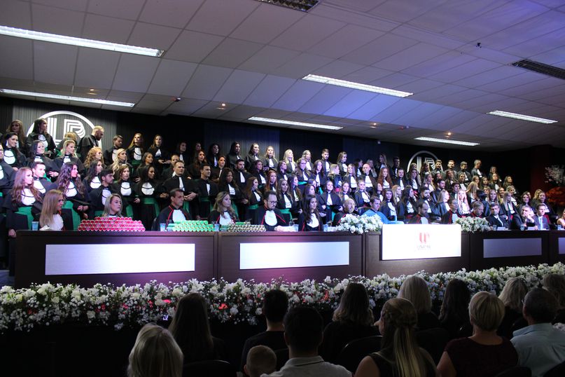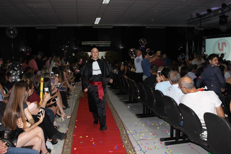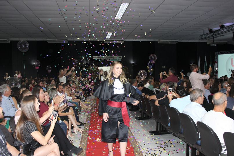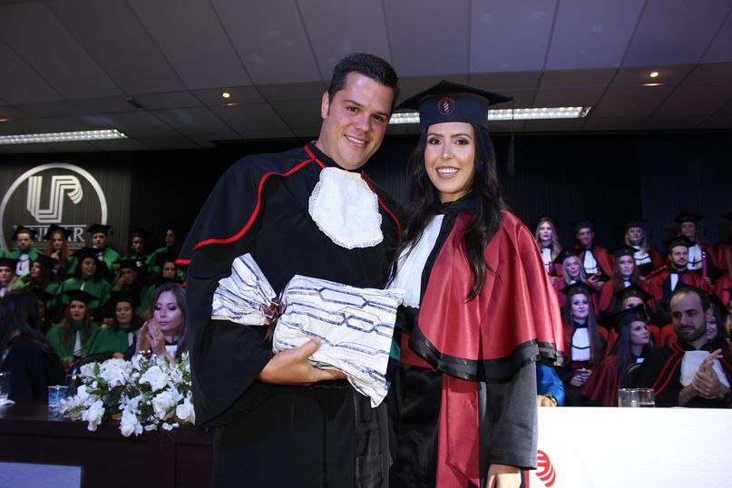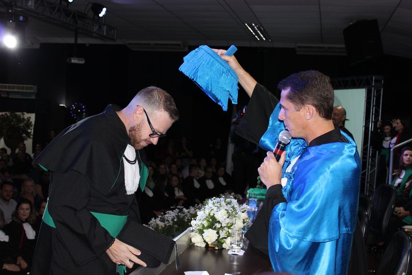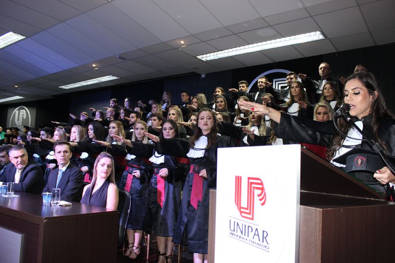 Como é de costume em todas as solenidades de colação de grau, a Unipar rende homenagem aos alunos que mais se destacaram em seus cursos. Certificado de honra ao mérito foi entregue pelos coordenadores de curso, professores Raphael Sahd, Débora Girardello e Laerte Bremm, aos laureados Iasmin Machado, Rosimeire Balaneker e Letícia Muller.