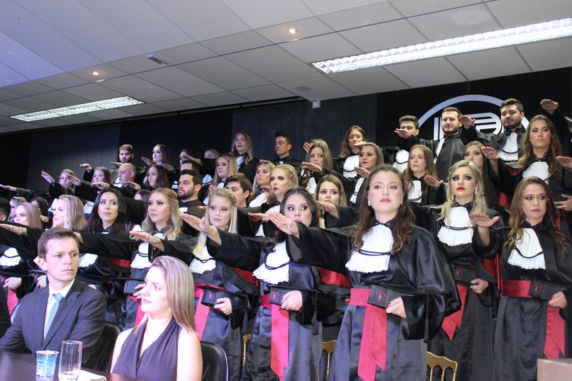 Outro momento de destaque foi o juramento profissional. Da tribuna, Eloize Machado proferiu o juramento do bacharel em Biomedicina, Cinthia Castilho, do bacharel em Enfermagem, e Letícia Muller, do bacharel em Odontologia. Palavras de gratidão, saudede e afeto foram enaltecidas pela oradora das turmas, Anna Buss.