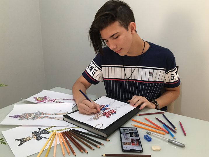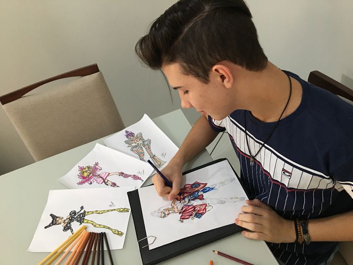 O autor é o estudante do ensino médio João Lucas Orcelli, que teve a chance de mostrar no meio universitário vinte dos vários croquis que fazem parte do seu portifólio