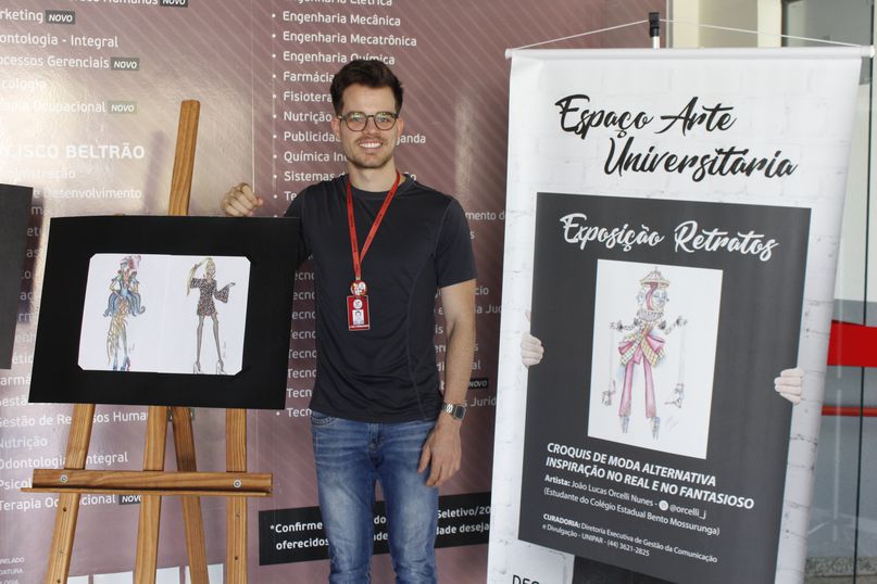 O trabalho artístico do estudante João Lucas Orcelli, 16 anos, ganhou projeção no meio acadêmico da Universidade Paranaense – Unipar, nesta semana. ‘Croquis de moda alternativa: inspiração no real e no fantasioso’ foi o tema da exposição que mostrou vinte dos seus desenhos, produzidos nas horas vagas.