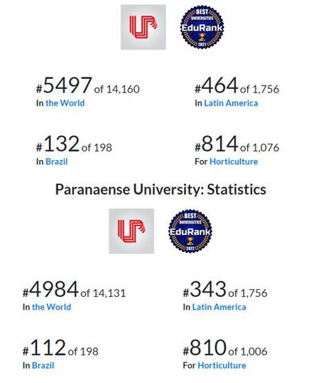 O portal também mostra outros detalhes, como a posição da Unipar no mundo. Em 2021, estava em 5497º de 14.160 universidades de 183 países. Em 2022, a posição mundial foi atualizada para 4984ª colocação de 14.131 universidades.