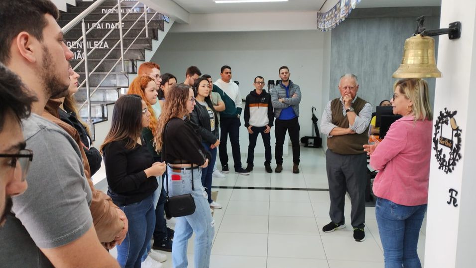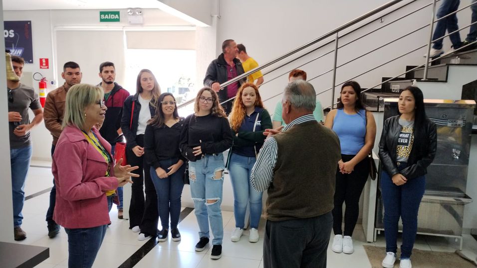 Os alunos foram recepcionados pelo fundador do grupo, Mário Gazin, que conduziu a visitação aos setores da empresa, explicando seu funcionamento.