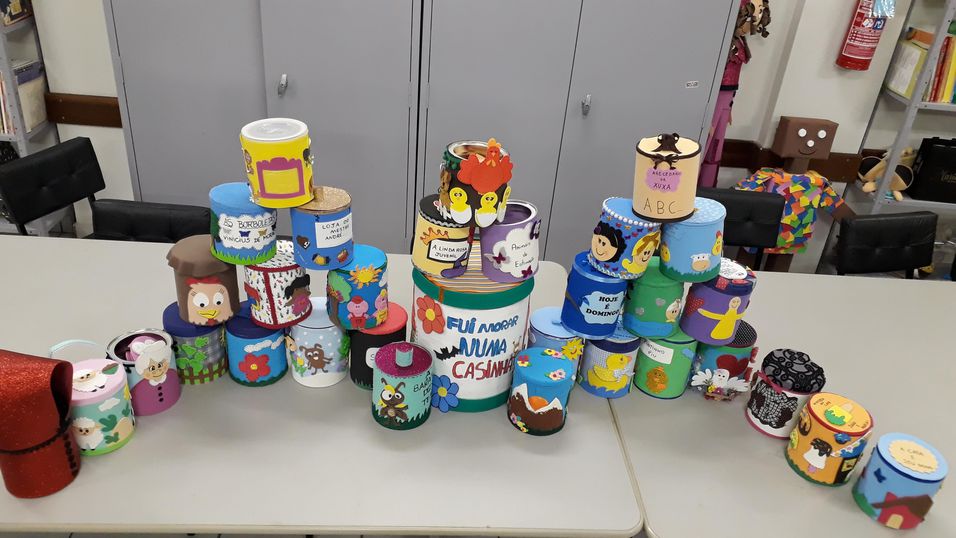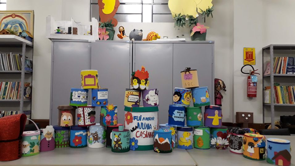 Usando lata, a turma produziu divertidos elementos para ajudar na contação de histórias. A decoração ganhou motes da literatura infantil e do desenho em quadrinhos. Segundo a professora Lucyelena Picelly, que ministrou a oficina, o resultado foi muito bom.