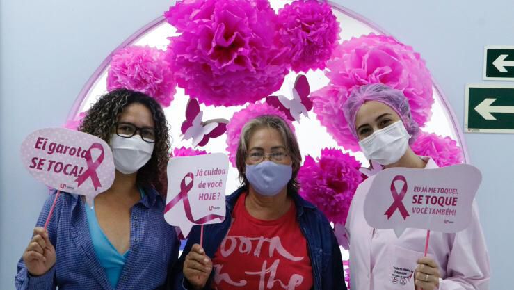 O trabalho de conscientização e prevenção foi além dos muros da Universidade. Na Unidade Central de Saúde, as acadêmicas também apresentaram vídeos educativos sobre o exame clínico das mamas e a importância dos exames anuais de prevenção.