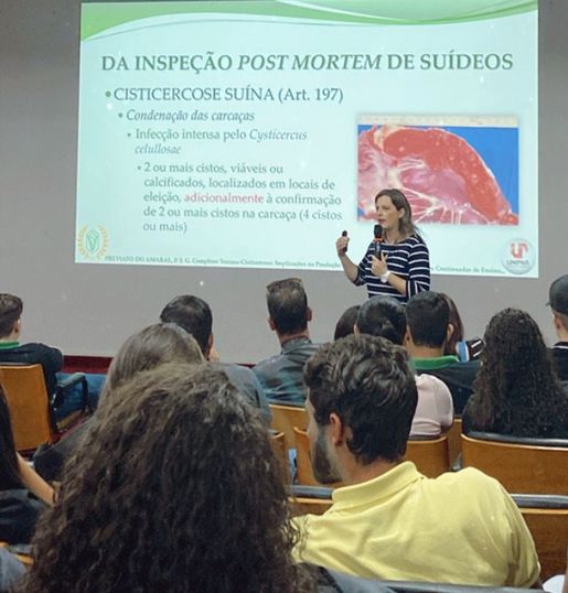 “Este tema é um dos mais pertinentes dentro da Medicina Veterinária, já que aparece com frequência em provas de concursos públicos. É uma questão que traz implicações na produção animal, causando a depreciação do valor venal da carne ou nos casos mais severos, prejuízo direto ao pecuarista, pela condenação total da carcaça e suas partes. Além disso, está diretamente ligado à Saúde Pública, uma vez que o consumo da carne crua ou mal passada, contendo o cisto (cisticerco) poderá causar no homem a teníase humana”, explicou Patrícia.