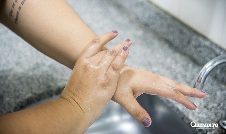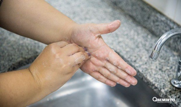 São dois tipos de processo: a lavagem com sabonete líquido neutro, que deve durar de 15 a 20 segundos, conforme orientação da Organização Mundial da Saúde (OMS). “O macete é cantar mentalmente o ‘parabéns para você’, que dura vinte segundos. A pessoa precisa lavar entre dedos, o punho, o começo do antebraço e ponta dos dedos”, salienta a pesquisadora Isabela Carvalho. Depois disso, com as mãos bem secas, o álcool gel 70% deve ser aplicado.