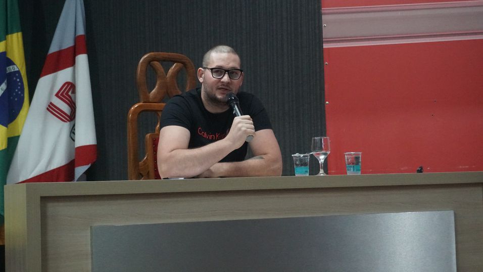 Após a palestra, também foi possível interagir com o público. O acadêmico da terceira série de SI, Augusto Vial Bilíbio conduziu um bate-papo com Emerson, aprofundando conteúdos técnicos e bagagem profissional.
