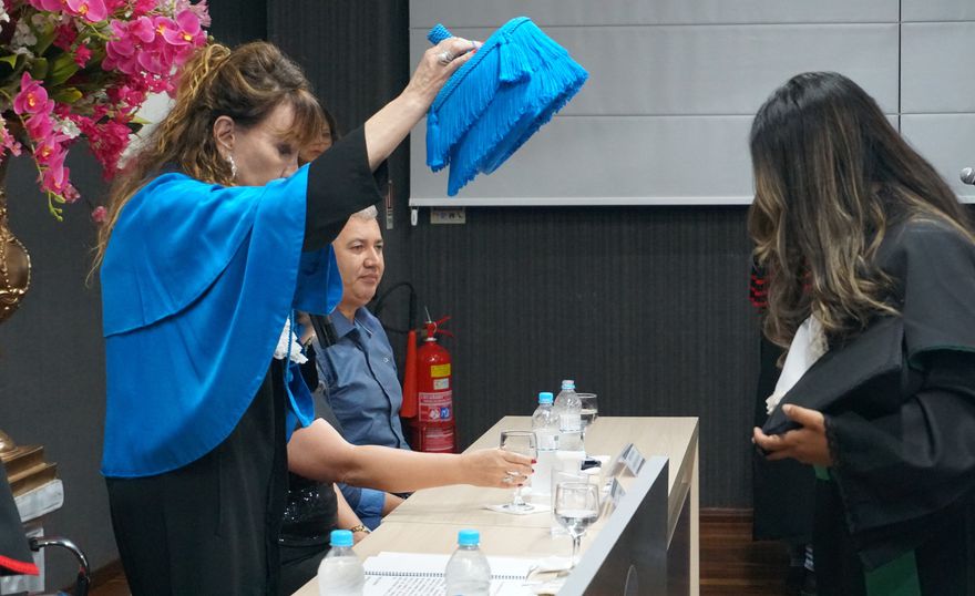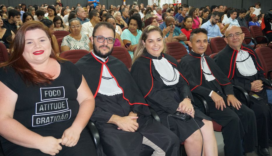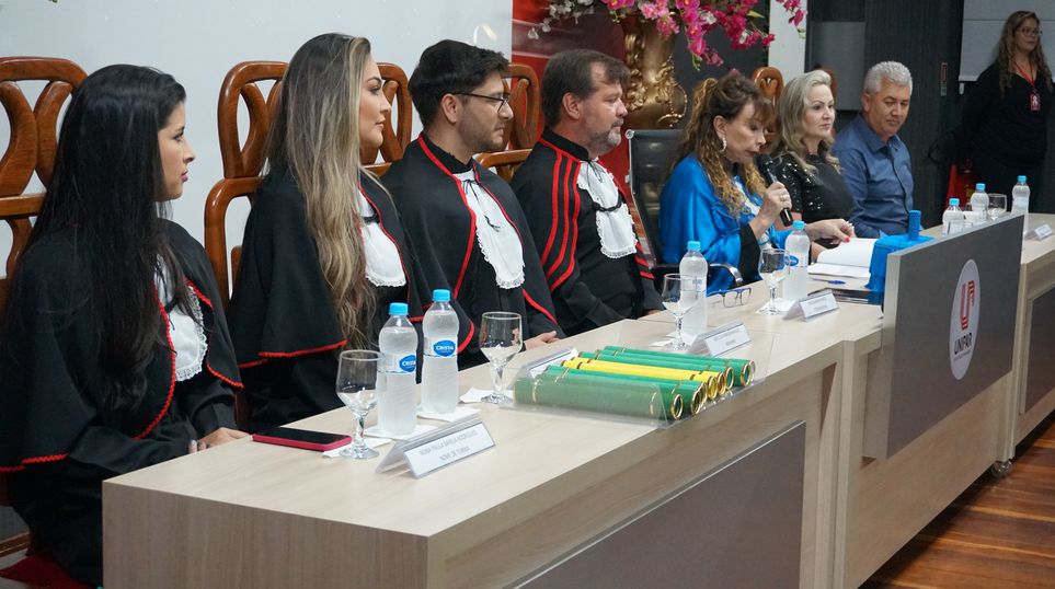 Da tribuna, proferiram o Juramento profissional os formandos Jhulie Mundin Ferreira (Arquitetura), Maria Eduarda Silva de Souza (Estética), Luan Vitor Goveia (Farmácia), Danilo Luiz Cavazim Neto (SI), Layani Rafaela da Silva, Eli Matheus Rocha Muniz Silva e Lídia Martins da Silva (Direito)