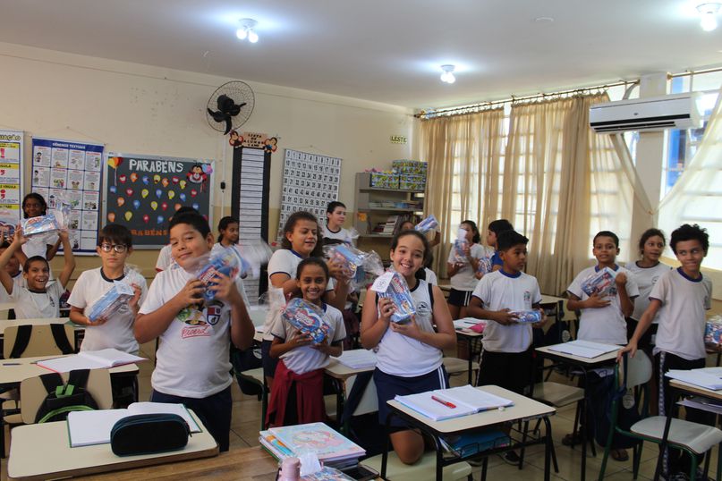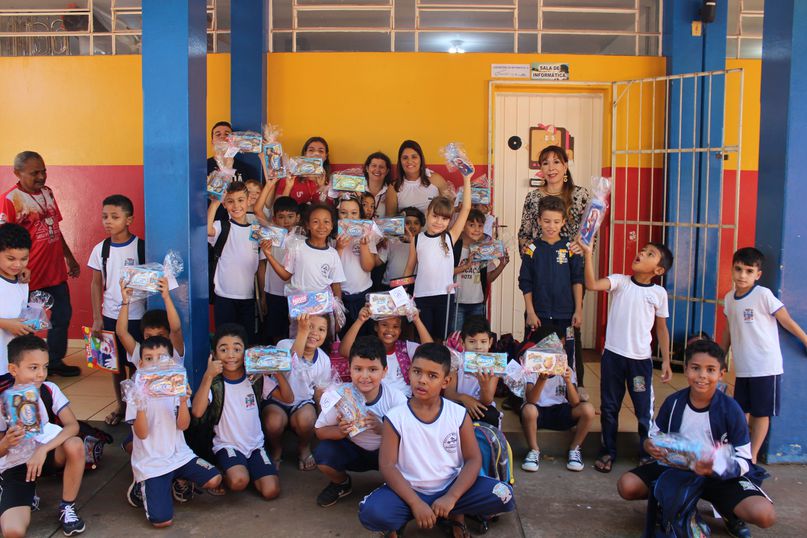 Em mais um ano de campanha, foram arrecadadas mais de 400 caixas de bombons, distribuídas para crianças da Escola Municipal Santos Dumont e da ONG GOES (Grupo de Apoio e Prevenção aos Portadores de HIV).