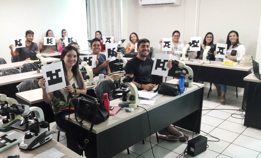 Para a atividade avaliativa foi utilizado o aplicativo Plickers, com a participação ativa e interatividade dos pós-graduandos. “O Plickers é uma ferramenta disponível na versão web e aplicativo para dispositivos móveis, usado para administração de testes rápidos, permitindo ao professor escanear as respostas e conhecer em tempo real o nível da turma quanto ao entendimento de conceitos e pontos chaves de uma aula. O aplicativo gera e salva automaticamente o desempenho individual dos alunos, criando gráficos e dados”.