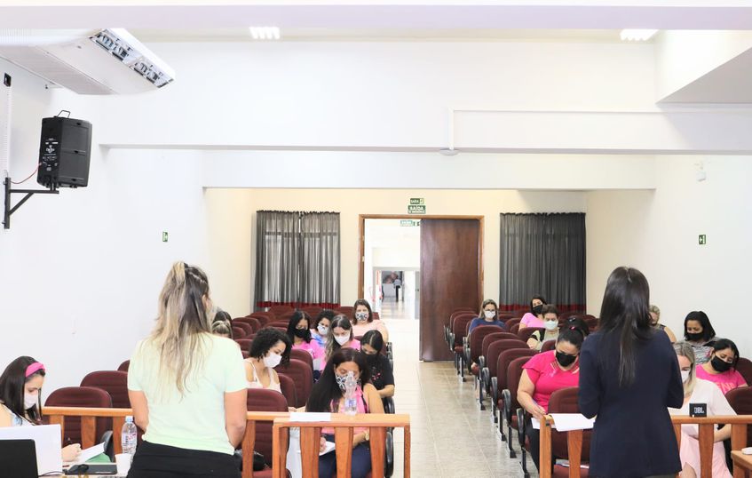 Mulheres foram o público do encontro, devido à campanha Outubro Rosa; as psicólogas discorreram sobre o corpo como forma de expressão de conflitos e sofrimentos psíquicos