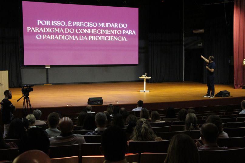 O gestor fez uma jornada sobre modelos de pensamento, como construímos o conhecimento e a maturidade intelectual. “A formação cria o horizonte, o diploma certifica a trajetória e a prática evidencia a competência operacional. O conhecimento tem que produzir engajamento, ou seja, fazer eco na vida”, lembra o palestrante, que defende a importância do docente priorizar o ser proficiente, preparar o estudante para demonstrar domínio funcional e estável de uma habilidade, de modo que a execute bem, de forma consistente, em contextos variados sem depender de ajuda externa constante.
