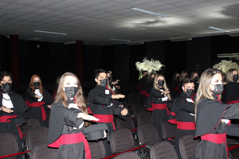 Os formandos participaram de forma presencial, contudo, em virtude da pandemia pelo Coronavírus, os docentes e familiares acompanharam de suas casas e se fizeram presentes de um jeito novo, de forma on-line, nos telões. Porém, não faltou o clima de festa.