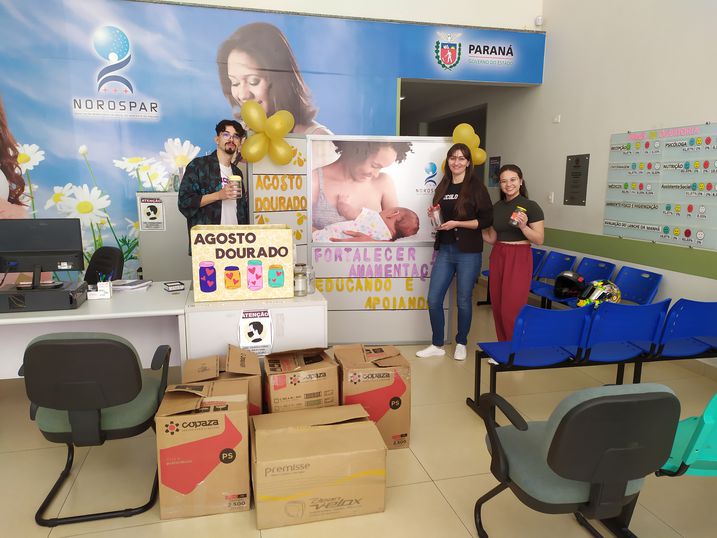 Nesta semana, o curso de Psicologia da Universidade Paranaense – Unipar/Umuarama, através do projeto de extensão ‘Ampliando Horizontes’, realizou a entrega parcial de potes de vidro para armazenamento de leite materno ao Centro Regional Mãe Paranaense (Hospital Norospar). As doações estão ligadas à campanha Agosto Dourado – que incentiva o aleitamento materno exclusivo até os 6 meses de idade –, e à parceria com o Banco de Leite Humano Norospar. Foram arrecadados 269 potes de vidro, que agora já estão em posse do banco de leite.