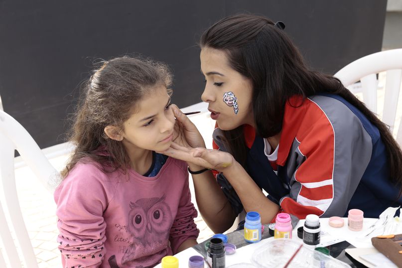 Crianças também tiveram atenção especial. Elas curtiram os cordeiros da barraca da Medicina Veterinária, se interessavam em aprender a escovar corretamente os dentes na do curso de Odontologia, se divertiram nos brinquedos infláveis na de Educação Física e faziam questão de passar na de Pedagogia para ganhar uma pintura na pele ou para participar de jogos educativos.