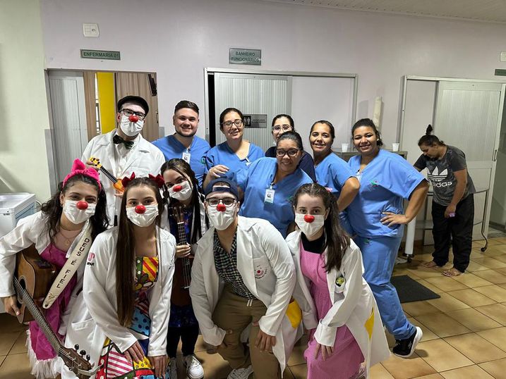 Nos últimos dias, o grupo de doutores da alegria passaram pelos hospitais de Umuarama: Cemil, Norospar, Uopeccan e Nossa Senhora Aparecida – espaços que foram preenchidos pelo entusiasmo dos ‘palhaços’, que são acadêmicos da graduação.