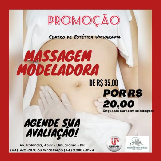 O Centro de Estética e Cosmética da Universidade Paranaense – Unipar, Unidade de Umuarama está com promoções imperdíveis em alguns dos seus procedimentos.