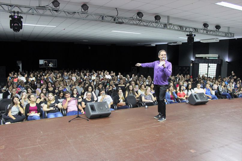 Reunidos, os cursos de Biomedicina, Enfermagem, Estética e Cosmética, Odontologia e Psicologia da Universidade Paranaense – Unipar, Unidade de Cascavel, receberam o humorista Rey Biannchi, que ministrou palestra sobre ‘O humor na saúde’.