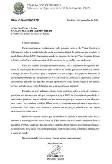 Proposta é que verba destinada a leitos hospitalares de atendimento à Covid-19 seja mantida pela Secretaria de Saúde do Estado