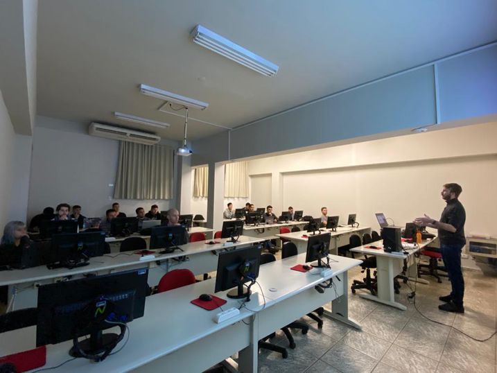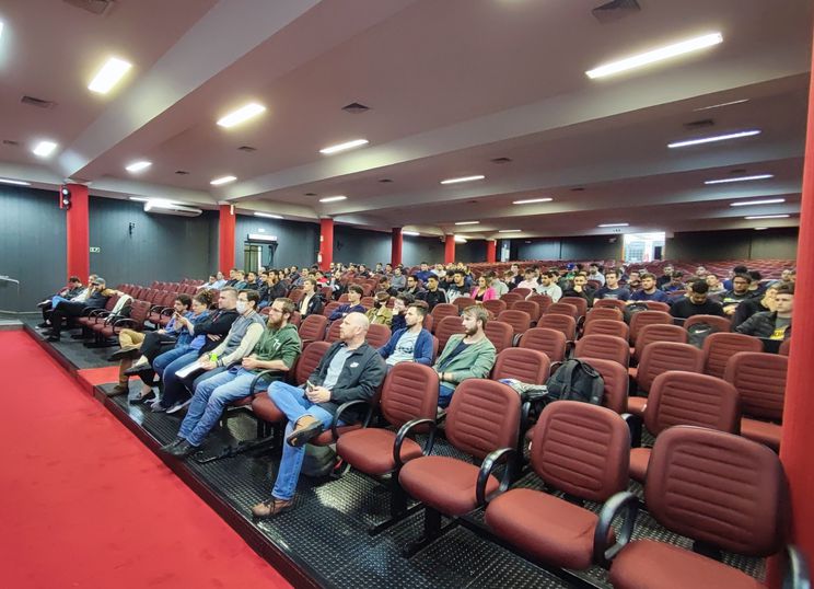 O evento contou, ainda, com diversas oficinas. Foram temas: ‘Power BI: transformando dados em informação’, ministrada pelo acadêmico Matheus Pereira (2ª série), que atua na Drogasil; ‘Introdução à análise de dados e web com Python’, pelo acadêmico Felipe Bender (3ª série), que atua na Solluti, e Matheus Eduardo, da Marinho Corp; ‘Criando aplicativos incríveis, usando apenas o Figma’, por Diego Krause, da CustumerX.