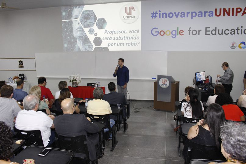 O tema que indaga ‘O professor será substituído por um robô?’ foi abordado pelo CEO do Centro Europeu, primeira escola de economia criativa do Brasil, professor Ronaldo Cavalheri, que também é fundador da Desrobotize - Planejamento de Carreira, head do Laboratório de Inovação em Inteligência Empreendedora e leader do Google Educators Group, em Curitiba.