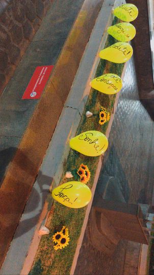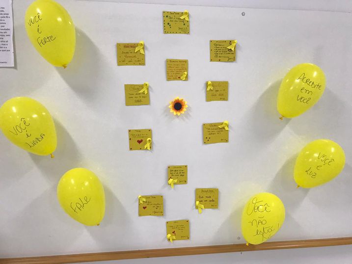 Durante todo o mês a Unipar ficou decorada em tons de amarelo [cor da campanha]. Os futuros enfermeiros foram criativos nos detalhes [usaram bexigas, girassóis e post-it’s] e nos recadinhos de motivação que espalharam por todo o Câmpus.