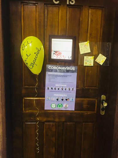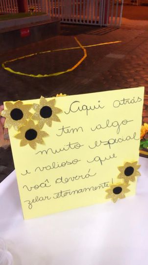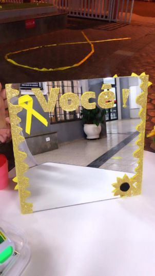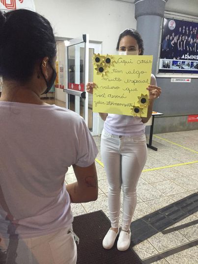 “Você é especial”, “Você é forte” e “Você não está só” estavam entre as frases mencionadas. A que chamou mais a atenção foi escrita em um cartaz: “Aqui atrás tem algo muito especial e valioso que você deverá zelar eternamente!”. No verso do cartaz estava escrito a palavra ‘você’ anexada a um espelho, com a intenção de promover o incentivo ao autocuidado.