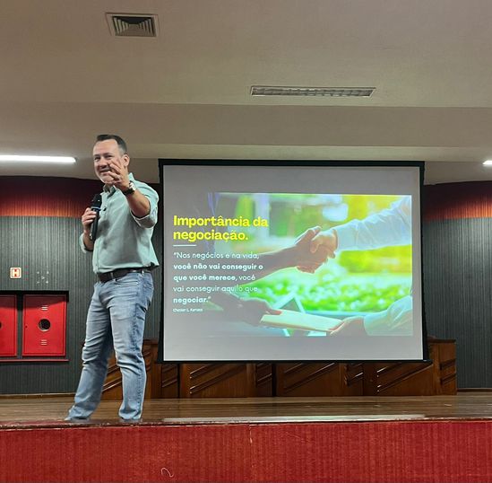 Após a palestra, ocorreu, no hall de entrada, a sessão de vendas e autógrafos do livro escrito pelo próprio palestrante, intitulado “Negociação e Vendas no Agro 5.0: da prospecção ao pós- venda, aprenda a conquistar confiança, se tornar relevante e ser autoridade”.