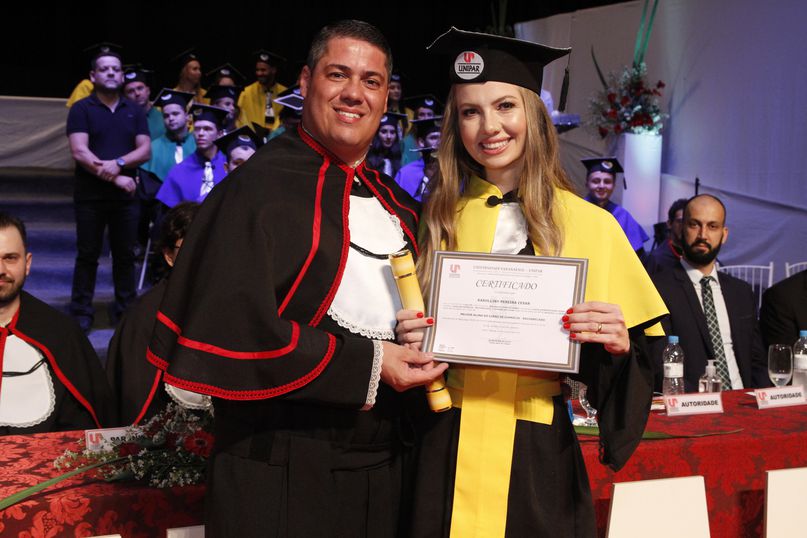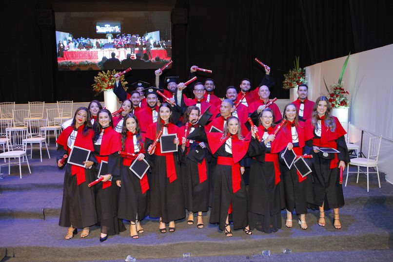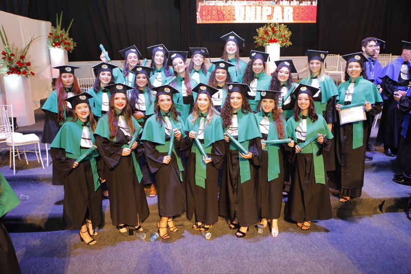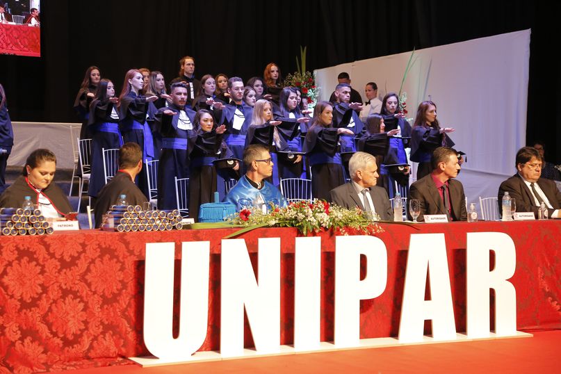 Para encerrar as comemorações, os formandos dos cursos da modalidade semipresencial adentraram ao recinto, com muitos aplausos. A Unipar formou novos profissionais de Administração, Análise e Desenvolvimento de Sistemas, Arquitetura e Urbanismo, Biomedicina, Ciências Biológicas, Ciências Contábeis, Design de Interiores, Design de Moda, Educação Física, Engenharia Agronômica, Engenharia Civil, Estética e Cosmética, Farmácia, Fisioterapia, Nutrição, Química Industrial e Sistemas de Informação.