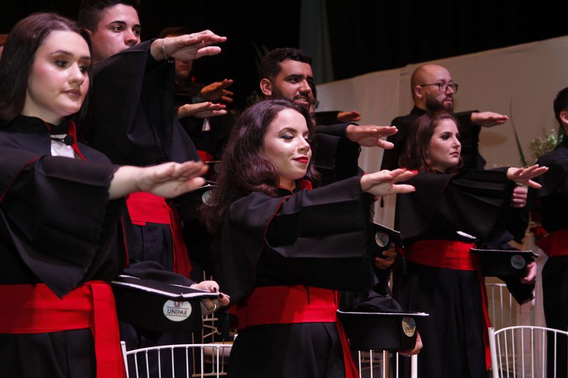 O momento do juramento profissional também é destaque do evento. Da tribuna, proferiram o juramento os formandos Isabele Martins, Sabrina Pedralli, Rafael Testa, Ana Cláudia Kich, Júlia Gomes, Dirceu Lickowski, Amanda Zilch e Paola Zanetin. E os oradores foram Nathaly Zeuckner, Kauan de Carvalho e Letícia Ferreira.