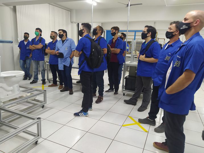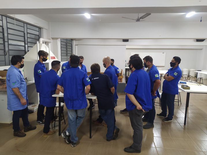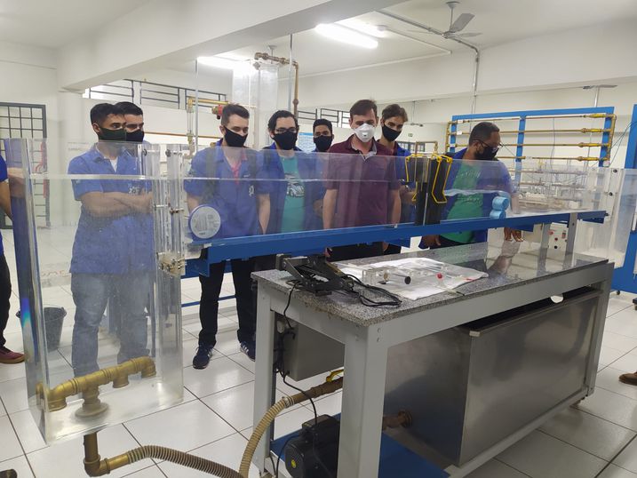 Na Instituição, o grupo teve uma aula prática sobre resistência dos materiais, mecânica dos fluidos e instalações elétricas e industriais
