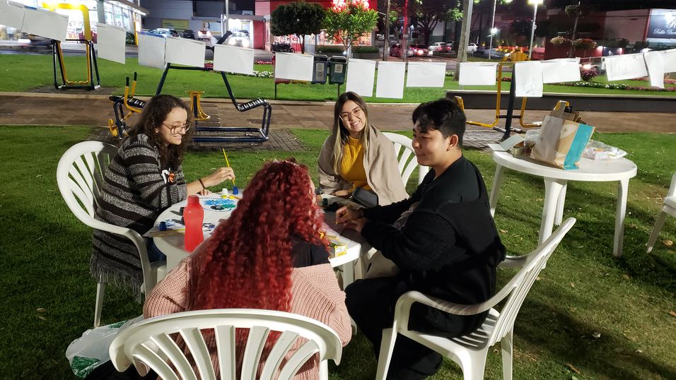 A ação se concentrou no Pátio das Colunas (Unipar sede), e envolveu cerca de 200 pessoas. O trajeto percorrido pelo grupo seguiu até a praça Miguel Rossafa. Lá foram montados alguns espaços de convivência com leitura de poesias, música, notícias, estatísticas e discussões sobre casos de abuso e exploração no Paraná e o varal das emoções. Esses ambientes foram produzidos por acadêmicos do 3º e 5º ano do curso de Psicologia e seus monitores de processos grupais.