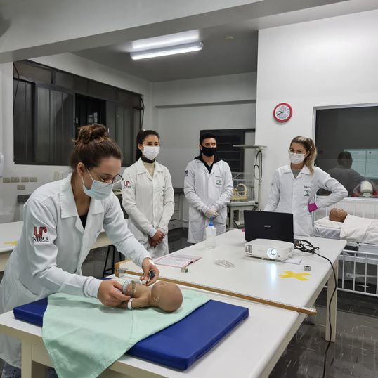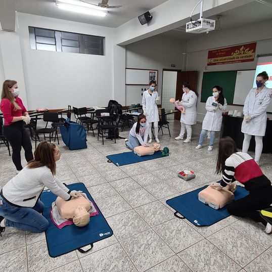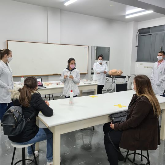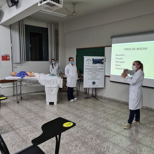 As práticas foram sobre massagem cardíaca, ostomias, centro cirúrgico, saúde da criança, saúde da mulher, higiene e conforto, importância do SUS, história da Enfermagem, áreas de atuação do enfermeiro, consulta de Enfermagem, psiquiatria e exame físico.