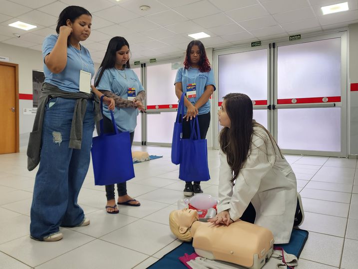 A acadêmica do curso de nutrição Ana Clara de Melo explicou aos visitantes as várias áreas de atuação de seu curso. “Conversamos com os alunos sobre dietas nas terapias, sondas, as diversas áreas que podemos atuar. Eles ficam muito surpresos quando a gente explica porque tinham aquela visão de que o curso seria só a parte de clínica, quando vai bem além disso”, comenta.