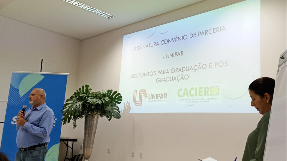 Na oportunidade, um convênio de parceria entre Unipar e Cacier foi firmado, com o objetivo de conceder descontos para ingresso nos cursos de graduação e pós-graduação aos filiados nas associações comerciais que fazem parte da Cacier.