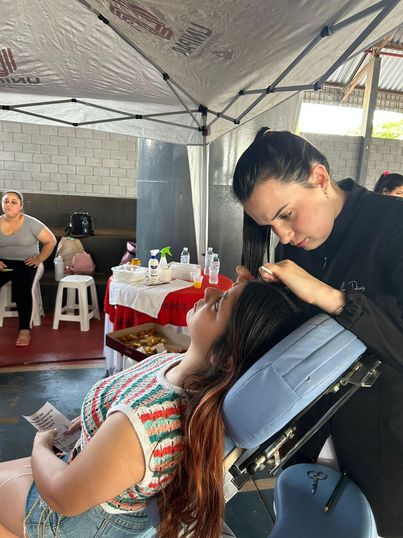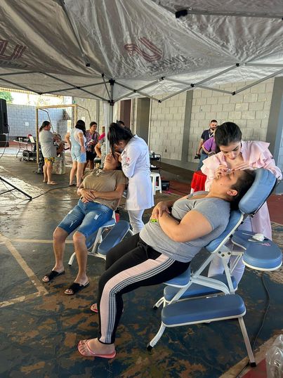 O curso de Estética ofereceu designer de sobrancelhas para as mulheres do bairro Eletrosul. À frente desta atividade esteve a esteticista Carol Mattos, acadêmicos do 3º ano e Câmara Municipal de Guaíra.