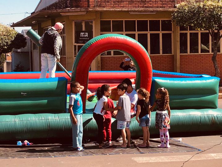 Os brinquedos infláveis do curso de Educação Física atraíram as crianças, que também aprenderam a escovar corretamente os dentes na barraca do curso de Odontologia; na de Pedagogia, elas ganharam pintura na pele e momentos de desafios nos jogos educativos.