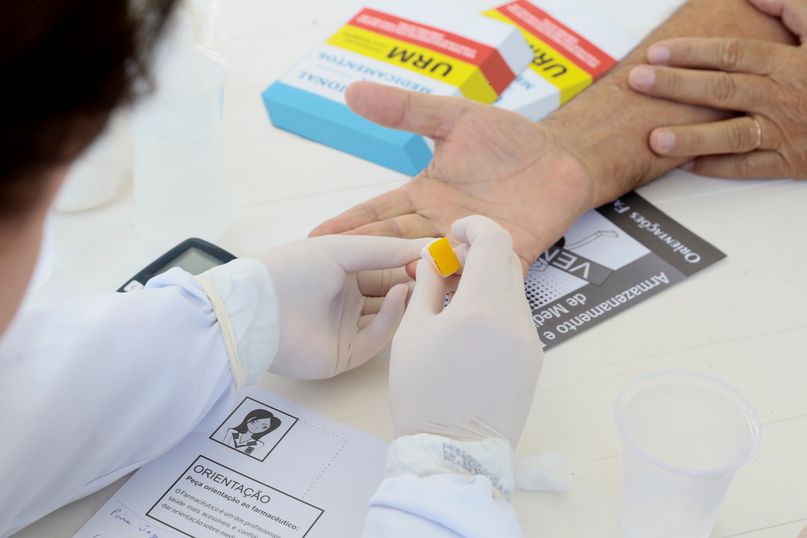 Também muito movimentado estavam os espaços dos cursos da área da saúde, onde estavam as equipes de Enfermagem, que aferiu a pressão arterial dos visitantes e falou sobre prevenção de câncer de mama e autoexame, e de Farmácia, que realizou testes de glicemia e orientou sobre os riscos da automedicação.
