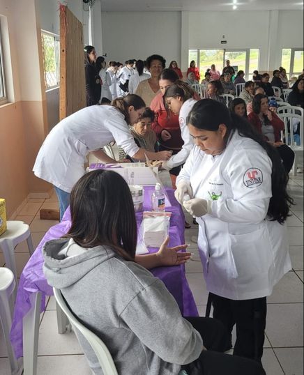 Os cursos de enfermagem e de estética e cosmética da Universidade Paranaense – Unipar, unidade de Cascavel (PR), foram convidados para o evento “Tarde para as mães”, da Associação de Moradores do Bairro Riviera. As atividades e serviços de saúde ocorreram no salão comunitário.