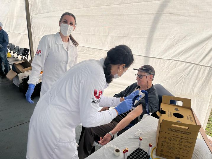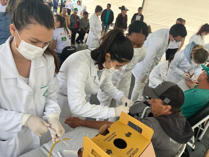 Os acadêmicos da Biomedicina realizaram coleta de sangue para o exame PSA, relacionado ao diagnóstico de câncer de próstata. Homens acima de 38 anos foram convidados. Os exames foram realizados no Laboratório de Análises Clínicas da Unipar e os resultados foram encaminhados ao médico responsável da Unidade de Saúde do município.