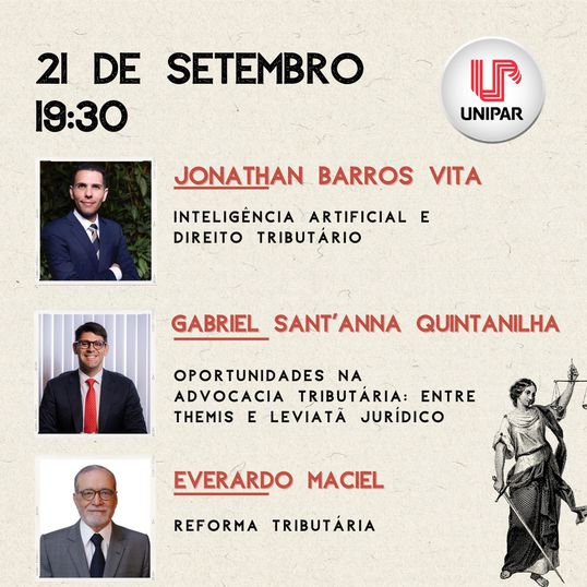 . 21/09, às 19h30 – ‘Inteligência Artificial e Direito Tributário’, com Jonathan Barros Vita;
