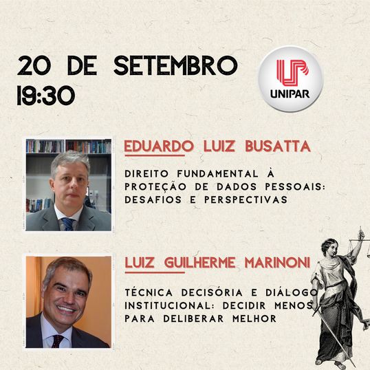 . 20/09, às 19h30 – ‘Direito fundamental à proteção de dados pessoais: desafios e perspectivas’, com Eduardo Luiz Busatta;