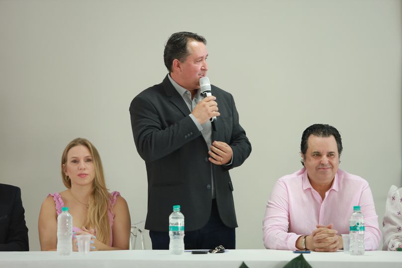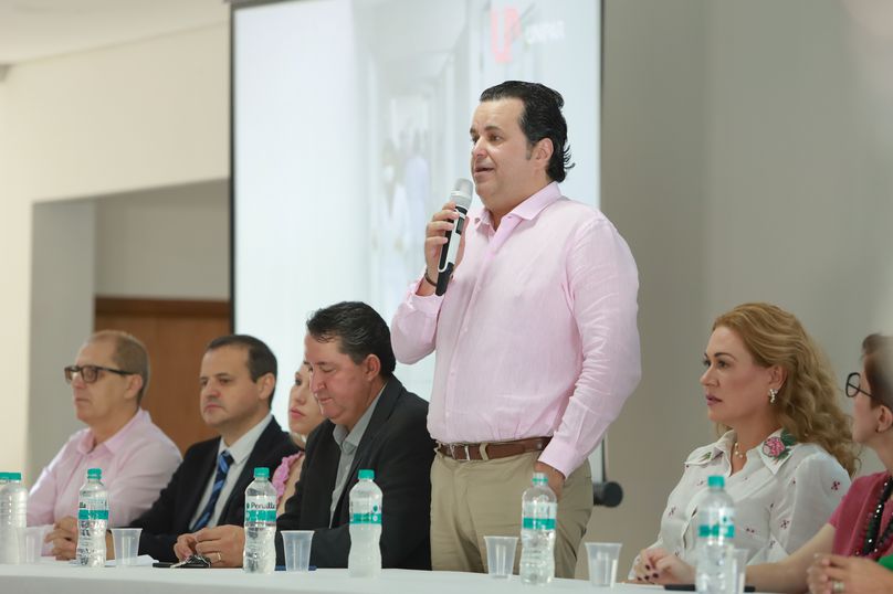 O Reitor, Dr. Carlos Eduardo Garcia foi o anfitrião da cerimônia, que contou com a participação, ainda, do prefeito de Umuarama, Hermes Pimentel, a chefe de Divisão de Atenção Primária, Jaqueline de Bortoli Shirabayashi, que esteve representando o secretário municipal de saúde, Herison Cleik da Silva Lima, a chefe do Núcleo Regional de Educação, Gilmara Zanata, além dos da casa, o diretor geral da Unipar, Artur Nappo Dalla Libera, a diretora da Unidade Umuarama, Fernanda Garcia Velasquez, o supervisor institucional pedagógico, Luiz Roberto Prandi e a coordenadora do curso de Medicina, Maria Elena Martins Diegues.
