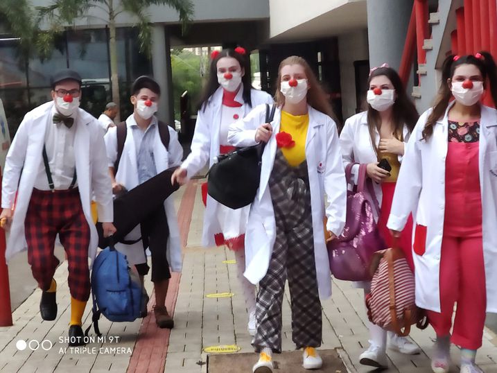 As atividades do Projeto de Extensão Uniparlhaços, do curso de Medicina da Universidade Paranaense – Unipar/Umuarama, continuam a todo vapor. O grupo tem cumprido uma extensa agenda de atividades, visitando hospitais e outros locais da cidade, sempre com uma mensagem positiva, de esperança e alegria.